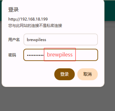 - 登录用户名密码为brewpiless。